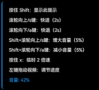 2.Shift+滚轮向上/s键:增大音量(5%);Shift+滚轮向下/a键:减小音量(5%)