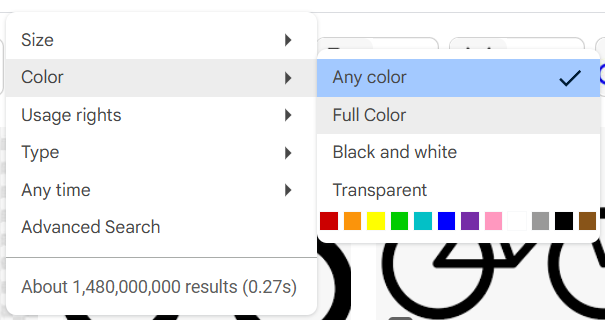 'Any Color' is impossible for me to use. It shows me like 85% or more black and white images when I want colored ones. Of course, I can search by a specific color by clicking that specific color option. But I don't want to search by just one color. I want to see all the different colors at once that are not black and white.