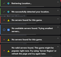 The features that search for servers with the lowest ping don't work at all. No matter what game I play, I always see the same thing (I've attached a screenshot below).