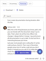 Allow downloading Microsoft Teams meeting transcripts even if you weren't the event organizer. Install this user script in your browser, open the meeting recap, open the transcript, and click on the blue arrow icon. The transcript will be downloaded as a Markdown formatted text file.
