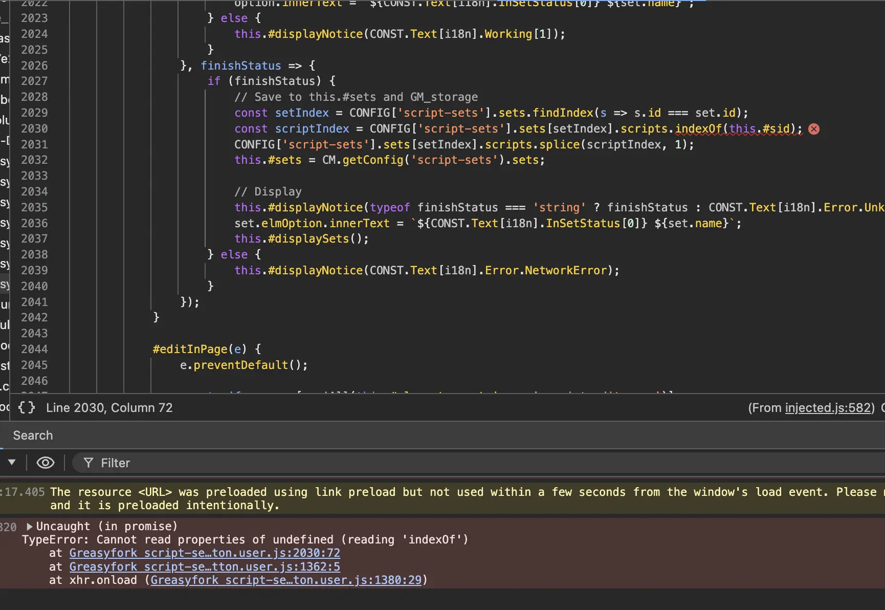 But in fact I still cannot understand why this is happening, because this never happened in my browser(Tampermonkey, Chrome, MacOS).
