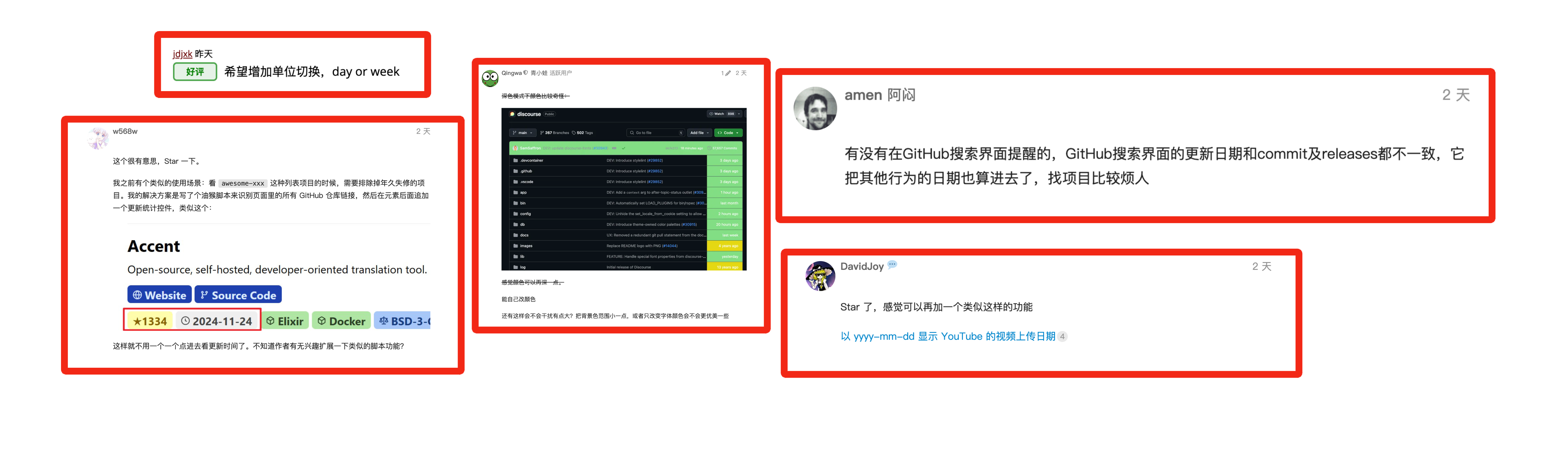 通过颜色高亮的方式,帮助你快速判断一个 GitHub 仓库是否在更新。