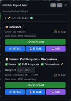 - Independent sections: Releases and Issues/PRs/Discussions each have their own controls, status, and output buttons